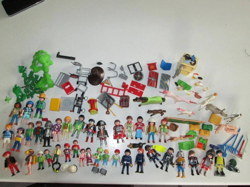 10 juin 19chansWillebroek - Playmobil. los, 28 grote en 10 kleine mannetjes eenhoornsEen groot lot playmobil met ; 10 kleine en 28 grote mannetjes , politie, ridders, enz, kruiwagen en werktuigen, eenhoorns en paarden , kippen; wilde baby dieren konijnenhokken, aanvul materiaal voor vUtilisé Enlèvement ou Envoi