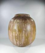 A vendre cruche art deco avec poignée tressée. Oeuvre du céramiste guerin de bouffioulx. Hauteur 32 cm diamètre 24 cm excellent état.