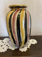Avant-hierCMBE07Braine-Le-ComteVase vintage H. Bequet, modèle 516EnlèvementBraine-Le-ComteAvant-hier - vintage keramische vaas H BequetKeramische vaas van h bequet uit quaregnon, belgië. Vintage design. Jaren 50-60. Heldere kleuren in zwart, roze en geel met gouden strepen en randen. De vaas is in perfecte staat zonder de minste besc