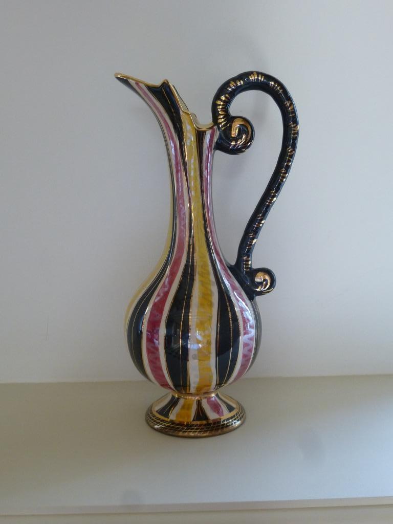20 sept. 25jessieLangdorp - Vase en céramique peint à la main par H. BequetCe vase en céramique a été fabriqué par la manufacture h. Bequet à quaregnon, en belgique, dans les années 1950-1960. Il présente un design caractéristique du milieu du siècle avec ses bandes coloréesEnlèvement ou Envoi