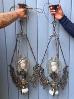 22 avr. 262dekansje.comToute la Belgique - Prachtige vintage smeedijzeren hanglampen – set van 2Vintage hanglampen lantaarnmodel – set van 2 mooie set van twee identieke smeedijzeren hanglampen in klassiek lantaarnstijl. Zwart metaal met krulversieringen, koperen bloemetje en geribbeld melkglas.Utilisé Enlèvement