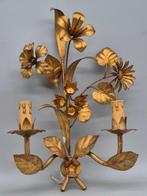 7 nov. 25Atelier114 Mr.KSchaerbeek - Im stile Hans Kögl – Wandleuchte im Florentiner Stil,Florentijnse wandlamp van hans kögl, verguld met bladdecor, uit circa 1960–1970, met twee lichtarmen en decoratieve kaarshulzen, in goede staat en werkend, afmetingen h 42 cm x b 26 cm x d 26 cm. Hart