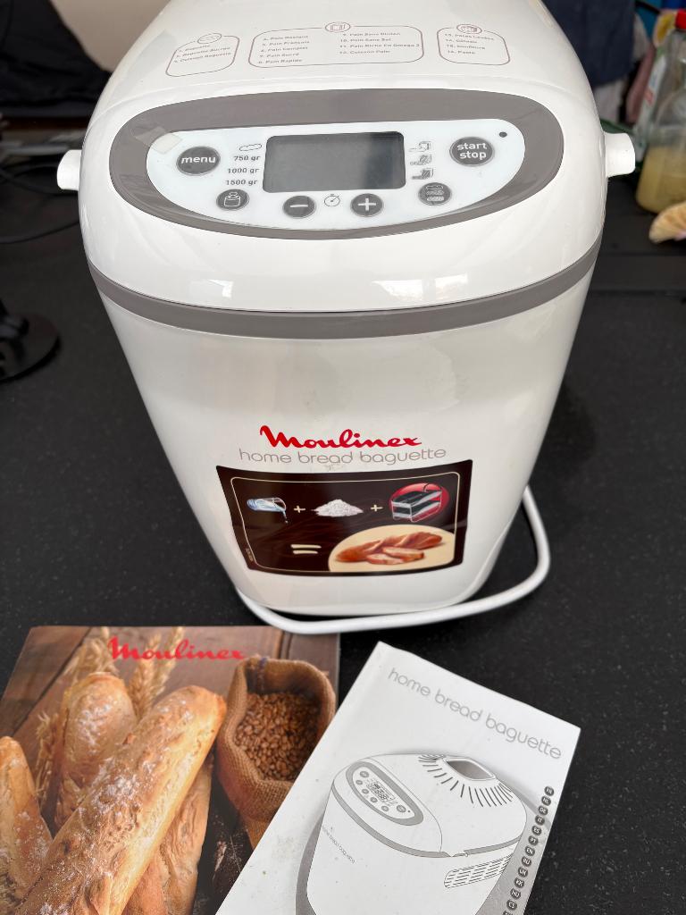 - Machine à pain Moulinex Home Bread BaguetteVends machine à pain de la marque moulinex, modèle home bread baguette, idéale pour réaliser facilement votre pain maison, mais aussi de délicieuses mini-baguettes croustillantes ! Caractéristiques prUtilisé Enlèvement