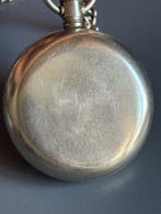 HierPub au topCatawikiToute la Belgique - a large and characterful antique mechanical pocket watch -Gros montre de poche mécanique ancienne à boîtier chromé argenté, ø environ 58,1 mm, remontage manuel, période 1900–1949, référence 8033369, poids environ 132 g, livrée avec une chaîne métallique, éta