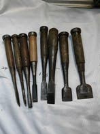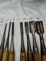 10 sept. 24hkHasselt - Staal, Hout Beitel - 22 cmVintage japanse slijpbeitels set (nomi), zeven stuks met stalen bladen en houten handen, in goede staat met lichte ouderdomssporen, afkomstig uit japan en daterend uit ongeveer jaren 1950–1960, met in