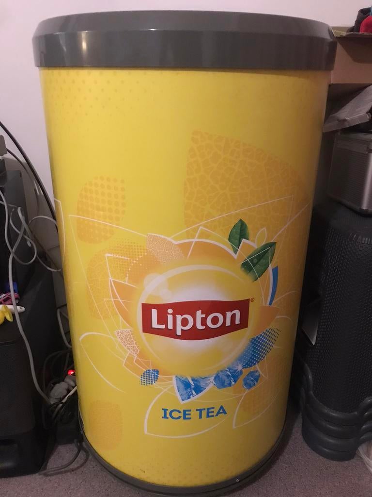 - Lipton Ice Tea Frigo (Koelkast)Lipton ice tea frigo die moeilijk te vinden is! Super leuke decoratie of om te gebruiken als koeling. Deze heeft ook wieltjes en kan makkelijk verplaatst worden. Als verzamelaar neem ik afscheid van dEnlèvement ou Envoi