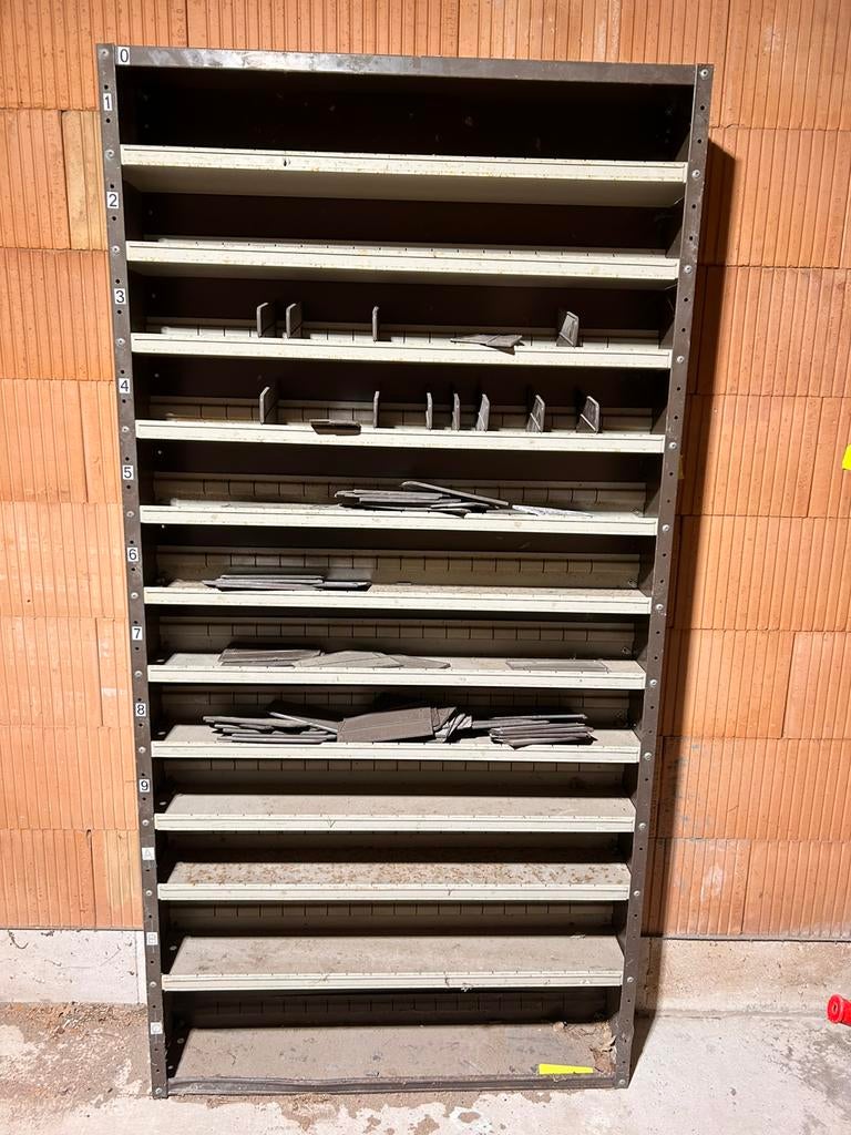 8 janv. 26Jean PaulDeinze - Vintage ijzeren vakkenkastVintage ijzeren vakkenkast 228,5 cm hoog x 86,5 cm breed x 35,5 cm diep elk vak is 41 cm breed x 20 cm hoogEnlèvement ou Envoi