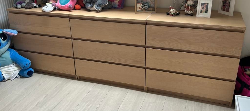 Aujourd'huiCris-TSchaerbeek - Meuble tiroirs Ikea MALM 80x123cm (2x pièces)- 2 x meubles tiroirs avec motif chêne - 6 tiroirs - 49 cm de profondeur - bon état (quelques petits coups liés au déménagement comme vous pouvez le voir sur la photo) - possibilité d'acheter lesComme neuf Enlèvement