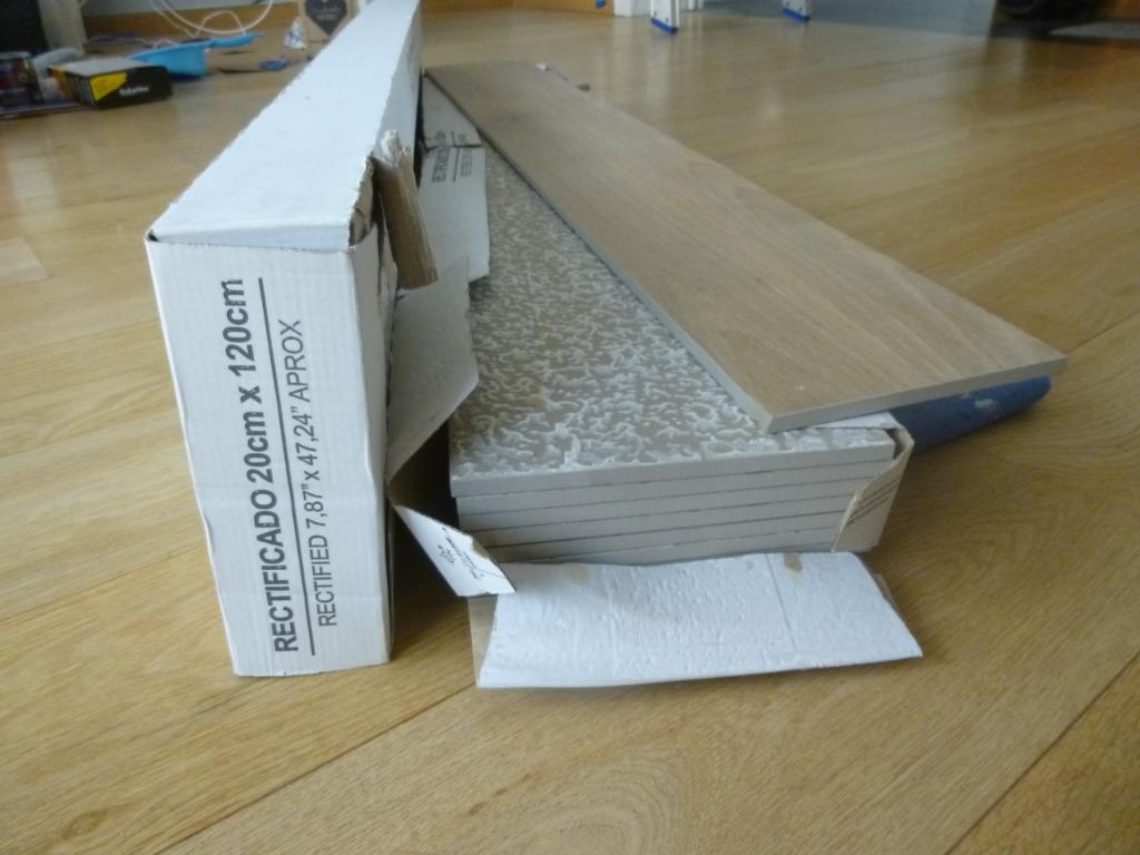 8 mars 26yasinkerimDison - Lot de carrelages parquet +-17M² + plinthes + Joints NEUFS !Carrelage imitation parquet 20x120cm +5 x plinthes 7x120cm +ciment de rejointoiage de la même couleur offert ! Neuf toujours dans l'emballage et sur palette. A venir chercher !Neuf Enlèvement