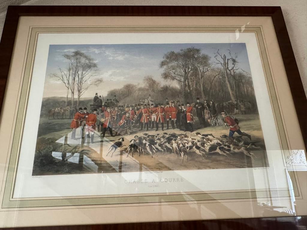 29 mars 26NeisdraWaremme - Grote klassieke wandprent – jachttafereel, netjes ingelijstPrachtige grote ingelijste wandprent met een klassiek jachttafereel (“chasse à courre”). Een sfeervolle voorstelling met ruiters, honden en jachtgezelschap in traditionele stijl. De prent is professioEnlèvement
