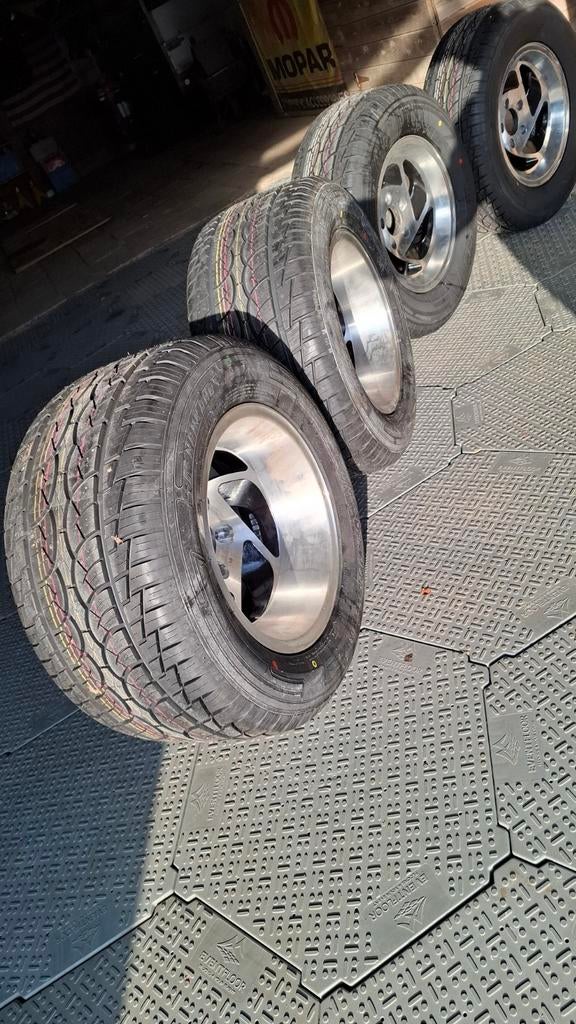 Avant-hierPintens LucSchilde - Grand ensemble de 5 trous avec pneus neufsJoli ensemble large de 5 trous avec des pneus neufs. Les jantes arrière de 15 x 10 m sont également neuves et de petites et grandes coutures chevrolet sont usinées à points multiples. Les jantes avantEnlèvement