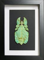 1 avr. 26NilsBerchem - Bladfasmide Taxidermie volledige montage - PhylliumSpecimen phyllium bioculatum (phasme feuille) in een zwarte houten lijst uit belgië, niet-cites-gereguleerd, in goede staat; gewicht 1 kg, afmetingen 18 × 13 × 3 cm, jaar 2026. Echte en originele blad