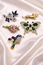Aujourd'huiPub au topCatawikiToute la Belgique - Beau jeu de broches vintage délégance française - années 80Ensemble de broches vintage d’élégance française des années 80, cinq broches avec cristaux multicolores très brillants et émail cloisonné, poids total 45 g, en excellent état avec de légers signes d’u