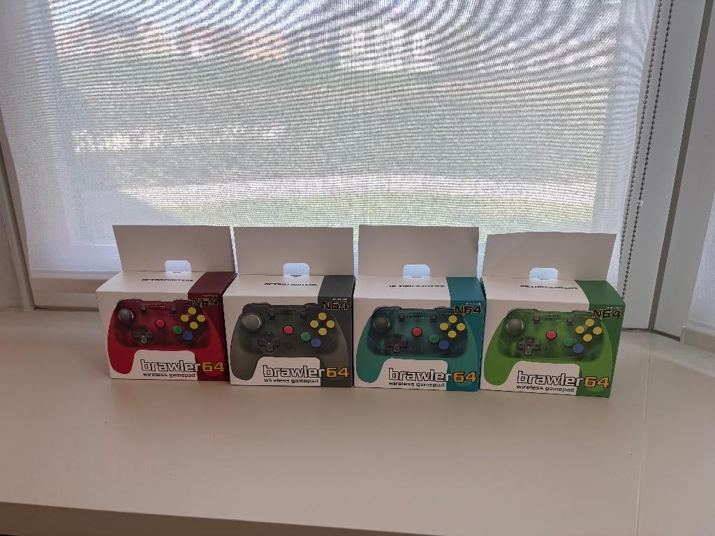 - Manettes Brawler 64 CIB (pour Nintendo 64 ou Switch)4 top manettes sans fil retrofighters brawler 64 pour nintendo 64 (et même nintendo switch). Des manettes confortables et réactives. Sold out depuis longtemps. Malheureusement, presque inutilisé, carComme neuf Enlèvement ou Envoi