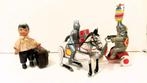 HierBart en VeroniqueBoechout - Various Manufacturers - Jouet en étain - Collection Of TinUne collection de jouets en fer-blanc comprenant un éléphant sur tricycle, en bon état et en étain, emballage de remplacement, fabriquée par divers fabricants; elle comprend trois articles : éléphant