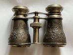 - Jumelles de théâtre - 1850-1900Paire de jumelles de théâtre en métal argenté, style art nouveau ornées d'un décor d'oiseaux et de fleurs, datées entre 1850 et 1900, dimensions 3,5 cm de haut sur 8 cm de large et 9,5 cm de p
