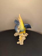 - Karl Ens, Volkstedt - Karl Ens - Figuur - PorseleinArt nouveau porseleinen papegaai-beeld uit duitsland (volkstedt), ontworpen door karl ens, circa 1919–1945, blauwe glazuur met gele kuif, hoogte 22 cm, breedte 15 cm, diepte 18,5 cm, gewicht 660 g. Ee