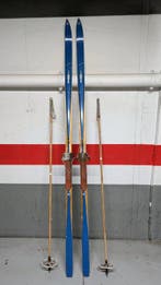 - Esquí - LanglaufskisOriginelen karhu nordic-langlaufskis, 213 cm lang met 153 cm stokken, gemaakt in finland in de jaren 1960–1970, blauw en houtkleurig, in uitstekende staat en circa 6 kg zwaar. Prachtige nordic-ski'
