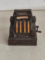 28 mars 26Americansaleshop.nlLanaken - KASREGISTER (National)Vintage metalen kasregister national model fr 860376 uit 1944 (3-1b). Werkt op 220 volt. Binnenwerk compleet, maar draaihendel en sleutel ontbreken. Gewicht +/- 30 kg. Staat van bewaring zie foto'Enlèvement
