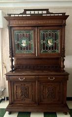Avant-hierJohannaSint-Amands - Buffet avec vitrailUn grand buffet flamand/néo-renaissance avec vitrail et vitrail. Le meuble a des étagères en haut et dans la partie inférieure. Au milieu, il y a 2 tiroirs, comme vous pouvez le voir sur la photo. FaiUtilisé Enlèvement