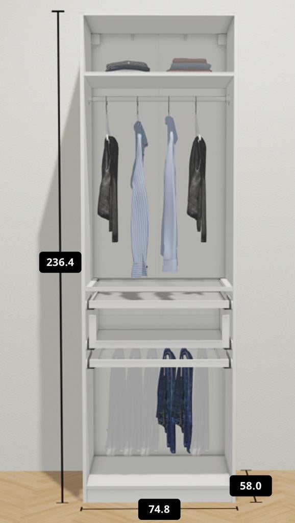 8 avr. 26Y.E.Antwerpen - IKEA PAX kledingkast 175x58x236cm (Transport klaar)Klaar voor transport! 3 Delen + lades (zonder schroef-stress) zo goed als nieuw: ikea pax kledingkast afmetingen: 175x58x236cm (zie laatste foto's) materiaal: wit gelazuurd eikeneffect + donker grComme neuf Enlèvement