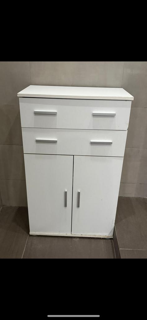 - KastWitte opbergkast met 2 lades en 2 kastdeuren onderaan. 1M hoogte 60 breedte 30 diepte ideaal voor badkamer, slaapkamer of hal. Laat gerust iets weten bij interesseComme neuf Enlèvement