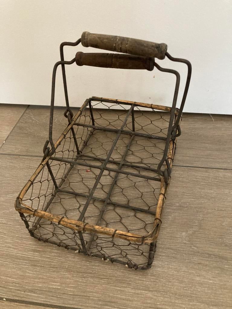4 mars 26HildeRiemst - Corbeille à œufs - Corbeille de Pâques - Corbeille en métalCorbeille rectangulaire en métal avec grillage - largeur 14,5 cm - longueur 22 cm - hauteur du panier 6 cm - hauteur avec anses 18 cm - en bon étatComme neuf Enlèvement ou Envoi