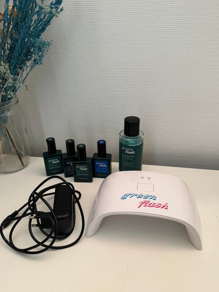 1 mars 26DanielIxelles - Kit Manucurist green flashVernis semi permanent 3 couleurs ( hortencia, beige,milky white) + dissolvant + base coat + top coat + lampe 24w + pinces de retrait + trousse utilisés 1 fois !!!!
