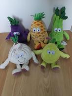 Knuffels vitaminis, in nieuwstaat, ook apart te koop; aubergine, ananas, knolselder, knoflook, peer.