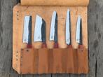 11 mars 26patrickBilzen - Keukenmes - Kitchen knife set - Set van 5 handgesmedeConditie: nieuw, met de hand vervaardigdleeftijd: hedendaags (21e eeuw)materiaal: damascus-staal messenbladen; gekleurde pakka-houten handgrepen; echte leren opbergkitoorsprong: handgemaakt vakmanscha