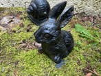 Aujourd'huiBilalZele+Deel Lokeren - Decoratief ornament (2) - Dieren - Frankrijk -Twee vintage tuinbeeldjes van gietijzer (fonte) uit frankrijk, uit 1980–1990, met een konijn en een slak, geschikt als decoratie, deurstopper of pennenhouder en met een gewicht van 1,2 kg. Een konijn