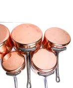 - Pan (6) - Koper, Messing - Handgemaakte koperen pannenset6 koperen pannen. Het is handgemaakt door kopersmeesters. De grootste lengte is 24 cm. De kleinste maat is 14 cm.3-5 Werkdagen levering aan europa via fedex express hét online veilinghuis voor jou! Ca