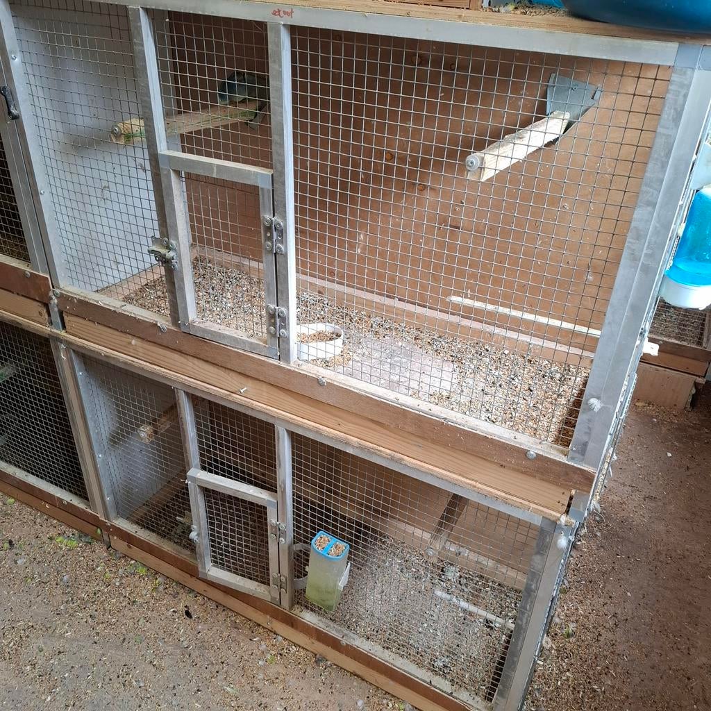 Hierverkoopzaal de kouterKortemark - kooien en vogelsKooien apart te koop de kooien zijn 2 op een voet - kweekkooien in hout en nog 6 draadkooienUtilisé Enlèvement