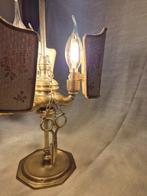 - Lampe de table - Laiton moulé, Damassé de coton - BouillotteLampe de bureau bouillotte ancienne, fabriquée en france en fonte d brass et textiles damassés, période estimée 1970–1980, 25 cm de largeur, 25 cm de profondeur, 45 cm de hauteur, couleur or, style vi