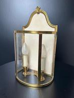 HierRHLanaken - Lampe - Verre, Laiton - Applique murale en forme de lanterneSuspension murale lanterne en verre et laiton, période estimée 1960–1970, provenance france, dimensions h 36 cm x l 21,5 cm x p 13 cm, en bon état et en état de fonctionnement, pour deux ampoules.