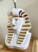 Jolie lampe de table avec une sculpture pharaon en laiton et abat-jour d'origine des années 80 état : voir photos (le papier doré à l'intérieur de l'abat-jour est décollé par endroits et 1