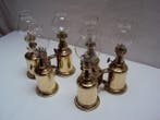 - Charles Pigeon et autres - 6 vraies belles vieilles lampes àZes franse olielampen uit 1930–1940, vervaardigd uit brons met glas en koperonderdelen, in uitstekende staat en werkend, met lonten aanwezig, circa 24 cm hoog inclusief glas. Zes prachtige oude franse