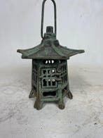 - Lanterne - Fonte - lanterne japonaiseLanterne pagode japonaise en fonte vintage des années 1970–1980, en fonte, origine asie, dimensions 16 cm de haut sur 15 cm de large et 15 cm de profondeur, poids 1250 g, en bon état avec de légères t