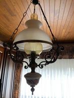 30 avr. 25Pub au topBoekenBalieToute la Belgique - Lampe suspendue vintageLampe suspendue avec abat-jour en verre dépoli blanc et lanterne en verre lacéré jaune. Porcelaine blanche avec motif floral sur la partie inférieure. Monture en métal cuivré. Hauteur totale du plafonEnlèvement
