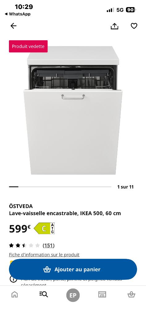 Aujourd'huialbdifelixAnderlecht - Lave-vaisselle encastrable Ikea parfait étatLave-vaisselle encastrable, couleur acier inox, 60 cm large, 82 cm haut. Acheté neuf 399€ parfaitement fonctionnel très bon état. Vente cause déménagement et double emploi. A venir chercher sur pUtilisé Enlèvement