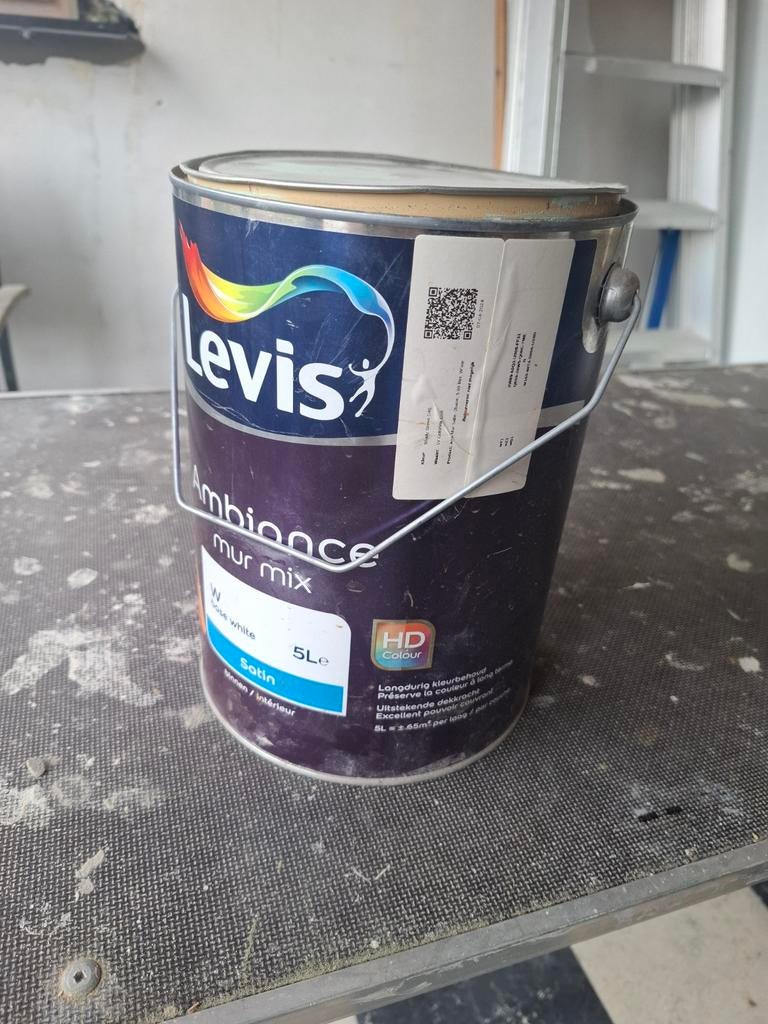 - Levis muurverfPot muurverf levis voor binnen. Kleur : eierschaal de pot omvat ongeveer nog 1,75 liter verfUtilisé Enlèvement