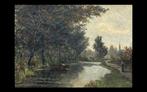 - L. Sonyné (XX) - Landschap met rivierLandschap met rivier, een origineel olieverfschilderij uit hongarije van l. Sonyné, gesigneerd en met lijst, met afmetingen 58,5 cm hoog en 68 cm breed. Het schilderij toont een kalme rivier die door