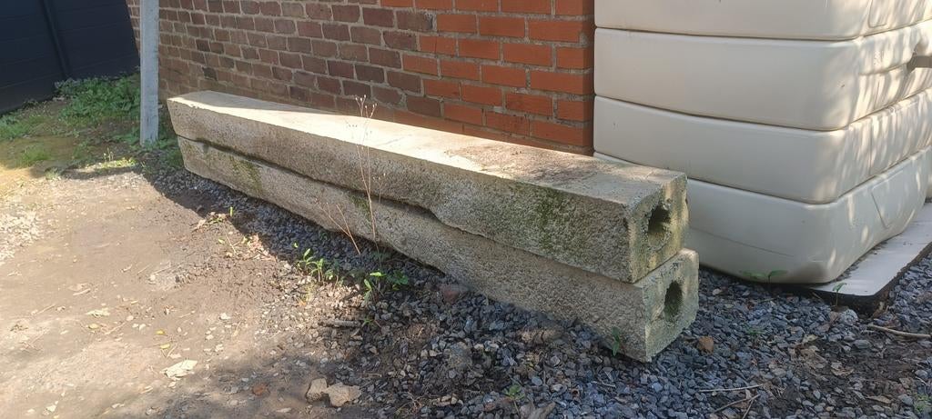 - Gratuit - 2 Linteaux 18x14x2202 linteaux 18x14x220cm en béton armé extrêmement lourd, pas d'aide possible, prévoir d'être 2 voir 3 personnes pour porter minimum. Stockés à +- 20m de la rueComme neuf Enlèvement