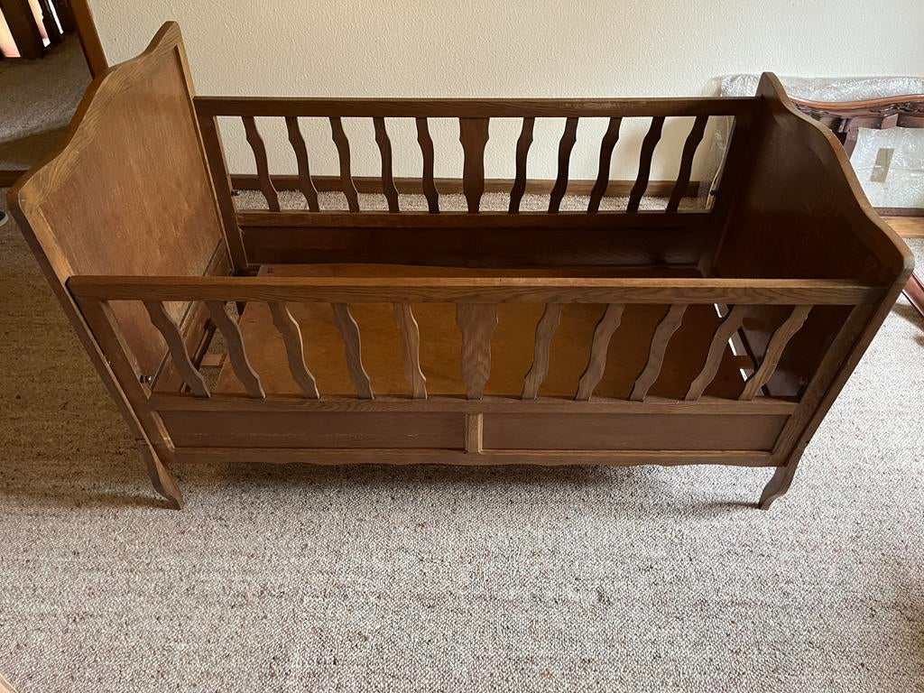 13 sept. 23AriatyMechelen-Aan-De-Maas - Ancien lit pour bébé en chêneEn bon état. Longueur maximale 1 m 42 (panneaux latéraux). Largeur 60cm et hauteur maximale 78cm. Avec planche pour supporter le matelas 117 x 60cm.Enlèvement