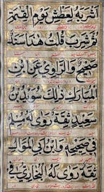 - Unknown - Muslim Prayers - 1740Muslim prayers, un feuillet de prière arabe illustré issu d’un manuscrit indien datant d’environ 1740, en un seul livre de 1 page, mesurant 22 cm sur 12 cm, langue d’origine arabe et en bon état.