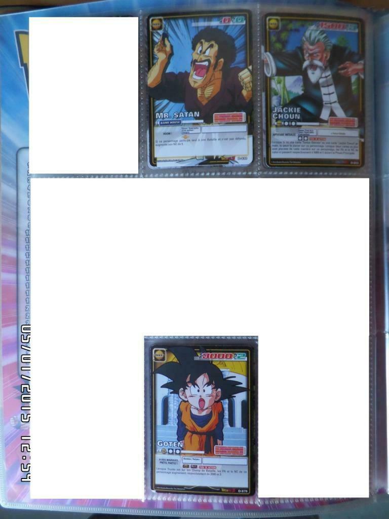 28 sept. 25RetroToysVerviers - Cartes Dragon Ball z Française série 2 et 3Je liquide ma collection, voici la première page de mon livre. Elles sont toutes en état impeccable cartes vendues à l'unité. D-230 : 6.00€ d-259 : 4.00€ (série 3) le reste des cartes quUtilisé Enlèvement ou Envoi