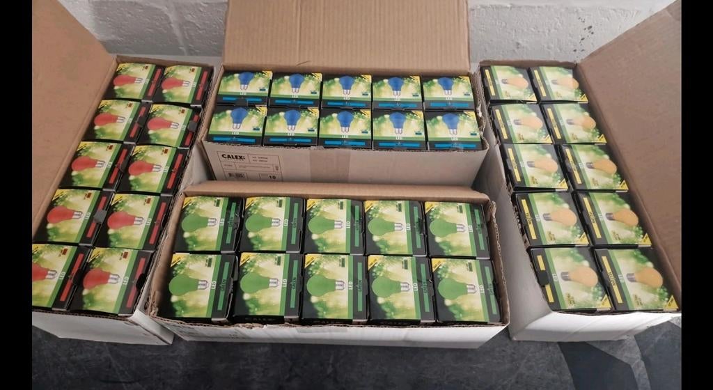 - Ampoules Led Calex pour guirlandesLot de 40 ampoules pour guirlandes rouge, bleu, vert, jaune 240v / 1w 12lm culot e27Comme neuf Enlèvement ou Envoi