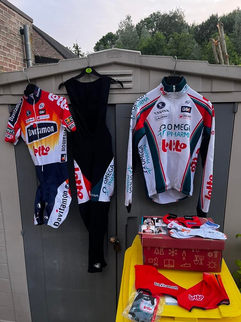 - Lot de vêtements de cyclisme de Mario AertsTous les vêtements originaux portés par mario aerts. La plupart des pièces contiennent ses initiales ou son nom. Tout est original peut également être vendu à l'unité, envoyez-moi un message pourEnlèvement ou Envoi