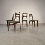 HierliliLot - Chaise - Bois, Textile - Lot de quattre chaises vintageLot de quatre chaises vintage au design scandinave, probablement des années 60, cadre en bois nettoyé et ciré, assises restaurées et tapissées dans un tissu à chevron vert; origine pays-bas et en exce