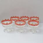 Aujourd'huiPub au topCatawikiToute la Belgique - Stampi Francolino - Service de boisson pour 6 - Verre -Lot vintage de six verres à cocktail des années 60, fabriqué par stampi francolino en italie en verre pressé avec des décorations rouges et dorées, style mid-century modern, hauteur 9 cm, diamètre 8,5